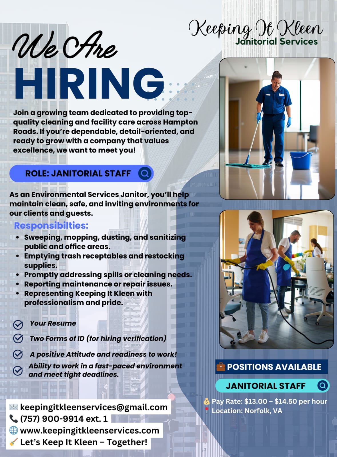 Here at Keeping It Kleen, you are our top priority! We take pride in our work in every way, with every facility we clean. Over our fifteen years of service, we’ve gained extensive knowledge of the many ins and outs of properly serving our clients. We are proud to be awarded seven years in a row for our dedication to quality and consistency.
